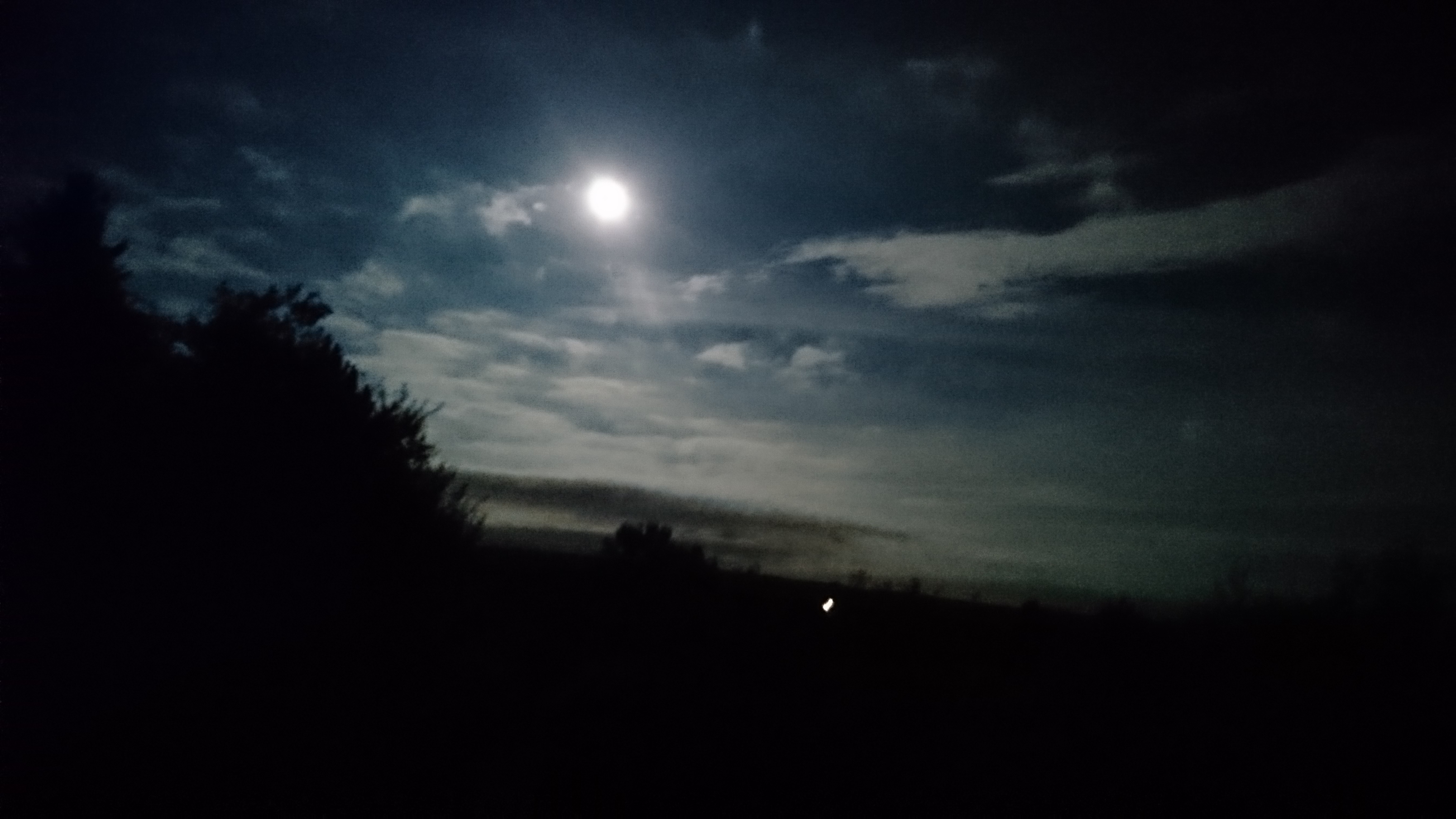 Og sådan tænker månen i dette nu, mens hun bader i nattens blå og sit eget lys sammen med os.