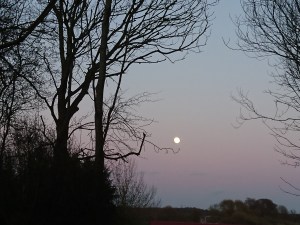 I nattens timer op til fuldmånen så jeg dette billede, som viser mig, at lyset holdes af selv den spinkleste væren. Og jeg forestiller mig, hvordan al ny væren strækker sine små fine grene frem og holder lyset.